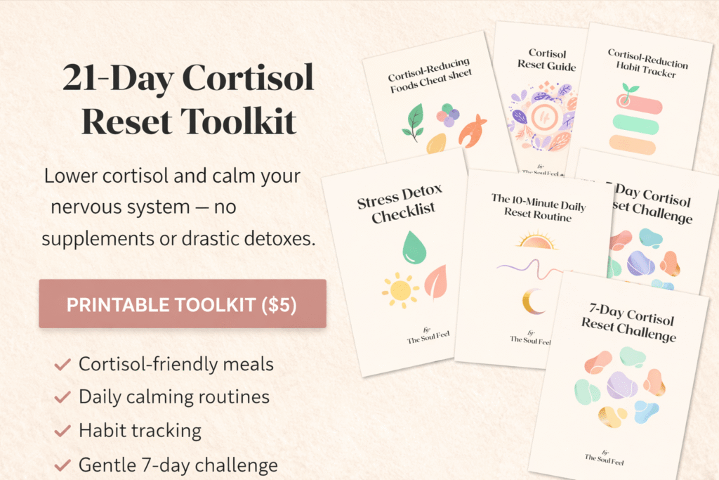 I later created a gentle 👉 21-Day Cortisol Reset Toolkit to support stress hormones through simple food habits, daily routines, and nervous-system care (no supplements, no extreme protocols).